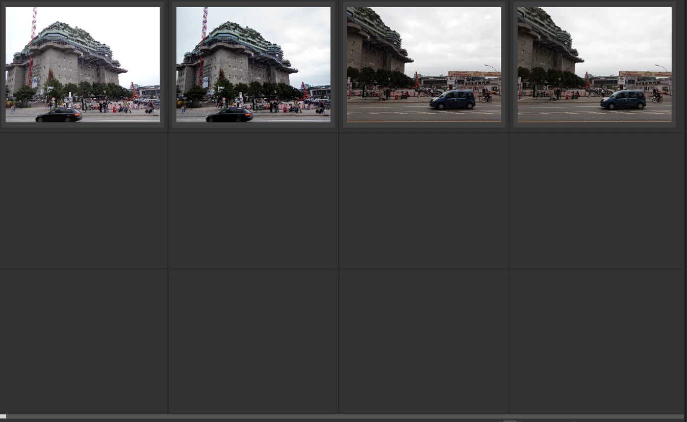 Beim Filmstreifen zeigt Lightroom Classic seit einiger Zeit nur noch eine Reihe Miniaturen, darunter sind leere Kästchen. Man muss seitwärts scorllen, um die weiteten Bilder zu sehen.