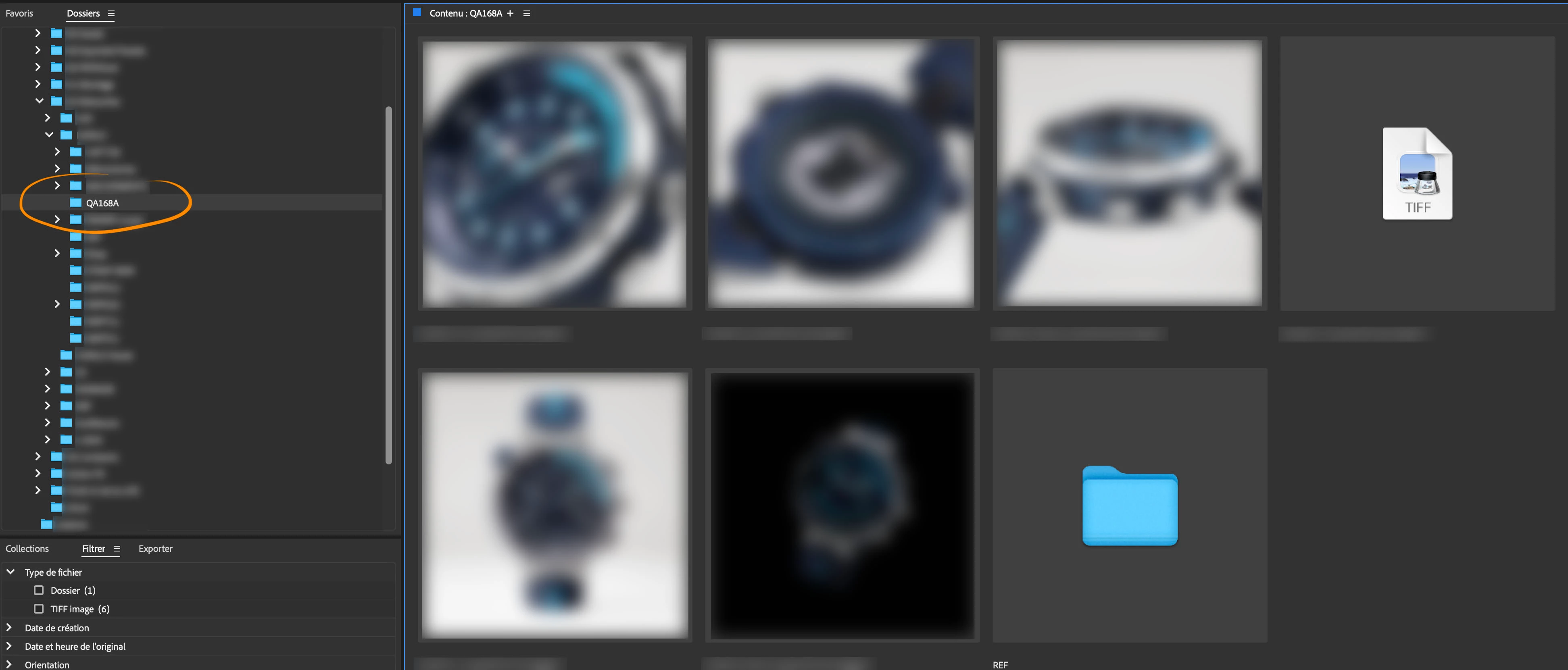 J'ai créé un dossier sous Bridge, puis un sous-dossier intitulé "REF" toujours dans ce même dossier et toujours par l'intermédiaire de Bridge. Pourtant la flêche qui est censée indiquer un sous-dossier dans la partie navigation n'est pas présente. Hors je n'affiche habituellement pas les dossiers dans la partie contenu pour simplifier mon affichage.