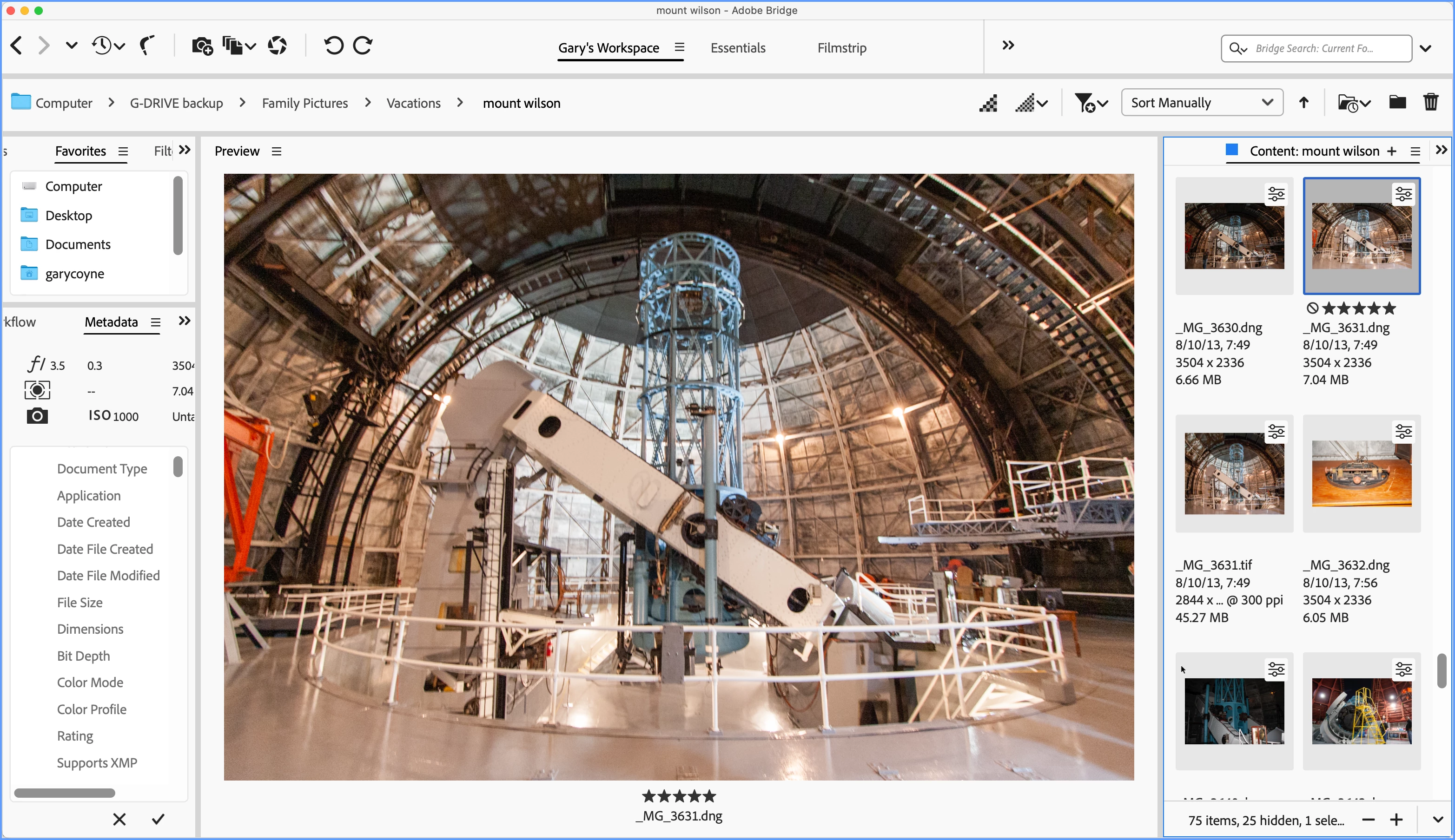 However, all that notwithstanding, I think I may have an alternate solution for you: create a different workspace. I've never been happy or satisfied with the Essentials workspace. I could never understand why the Preview window was only slightly larger than the thumbnails. Below is my Workspace. Certainly variations are available. But the basic concept is two columns of control, while the center region is the Preview Panel. The right panel is for the Content Panel only. Could that help? I know I can see the obviously out of focus images very clearly in that region even though it's not going to be 100%.