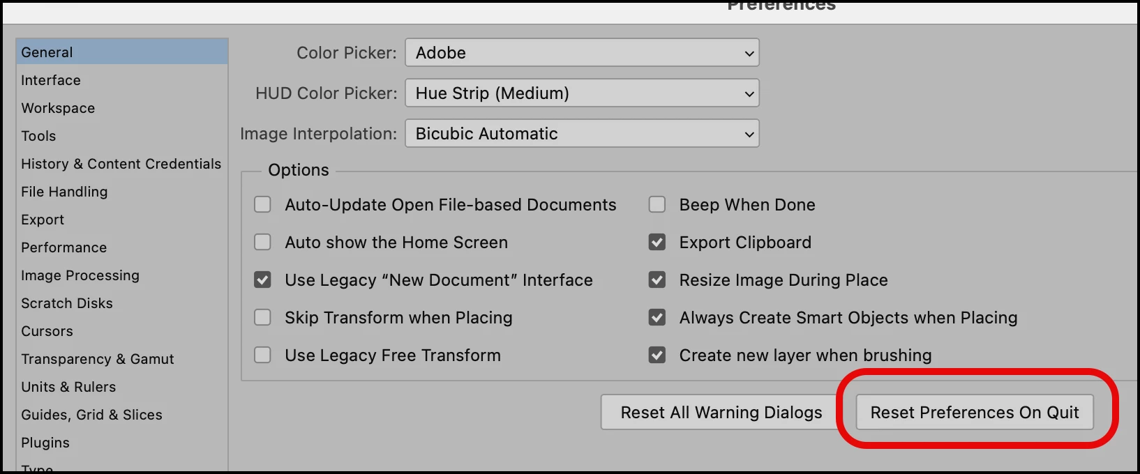 Here is the instructions for resetting PS preferences. It's pretty straightforward.