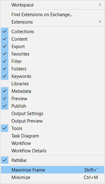 Those who don't have an English keyboard with version 13 lose Tab to Hide and get locked out of the Subwindow magnification feature too (I saw no other way to run this command). The issue, obviously, could get solved with editable keyboard shortcuts: A feature Bridge users have been asking for, since day one.