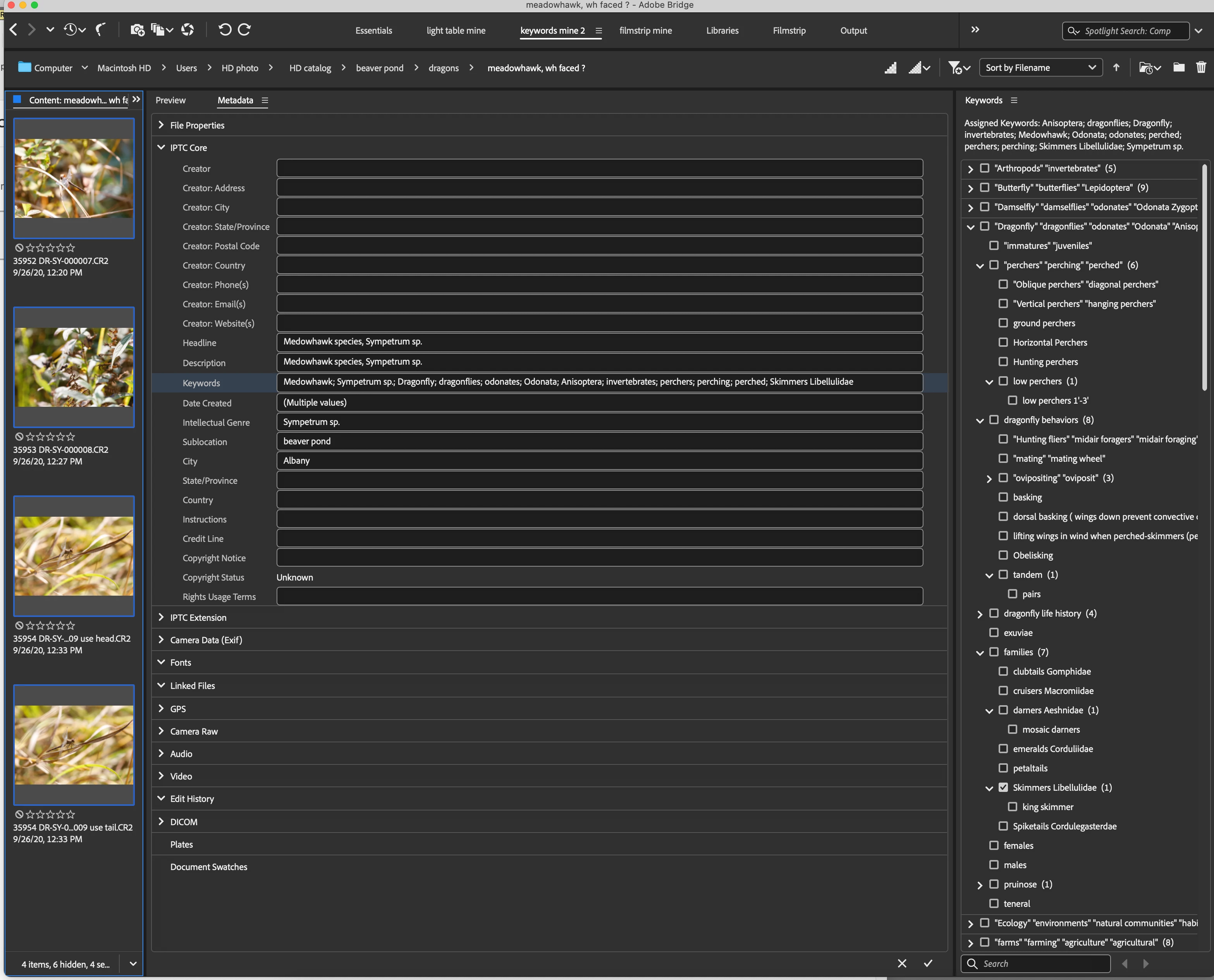 metadata for selected photos going blank