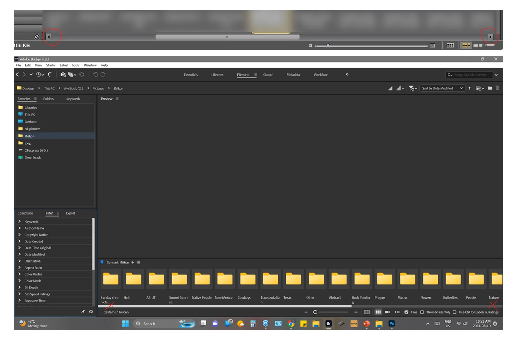 Since installing Bridge 2023 I no longer have the navigation arrows on the filmstrip