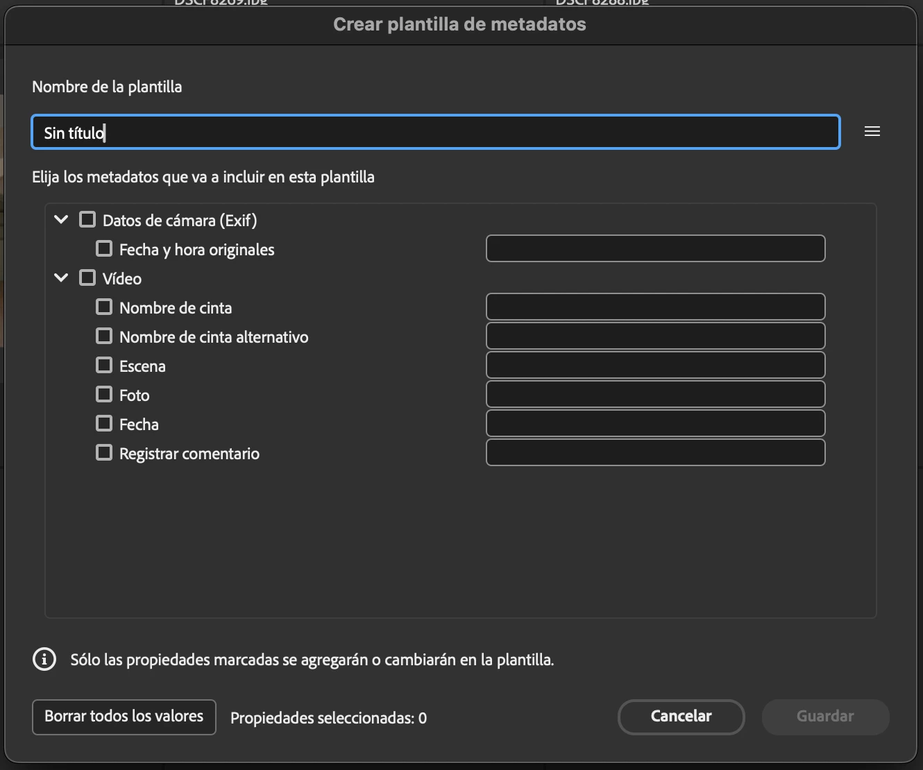 I would like to create a Metadata Template on Adobe Bridge to add autorship and copyright to my pictures. However, when I open the "Create Metadata Template Tool" on Bridge, I can only choose between fields from "Camera Data (EXIF)" and "Video" categories. All other categories (such as IPTC, Audio...) are missing.