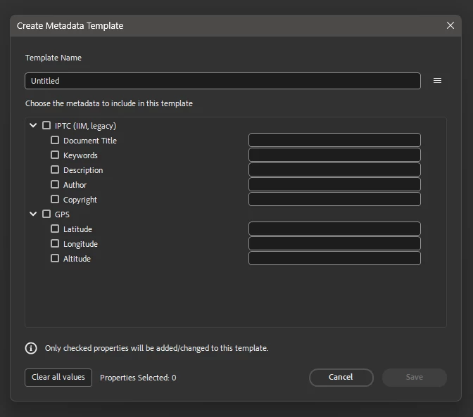 Missing fields on Adobe Bridge Metadata Creator / Editor