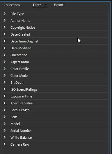 Hmm... All of the files in the sub-folder have the same exposure settings. Does Bridge now only show filters if there are parameters that are different between files?