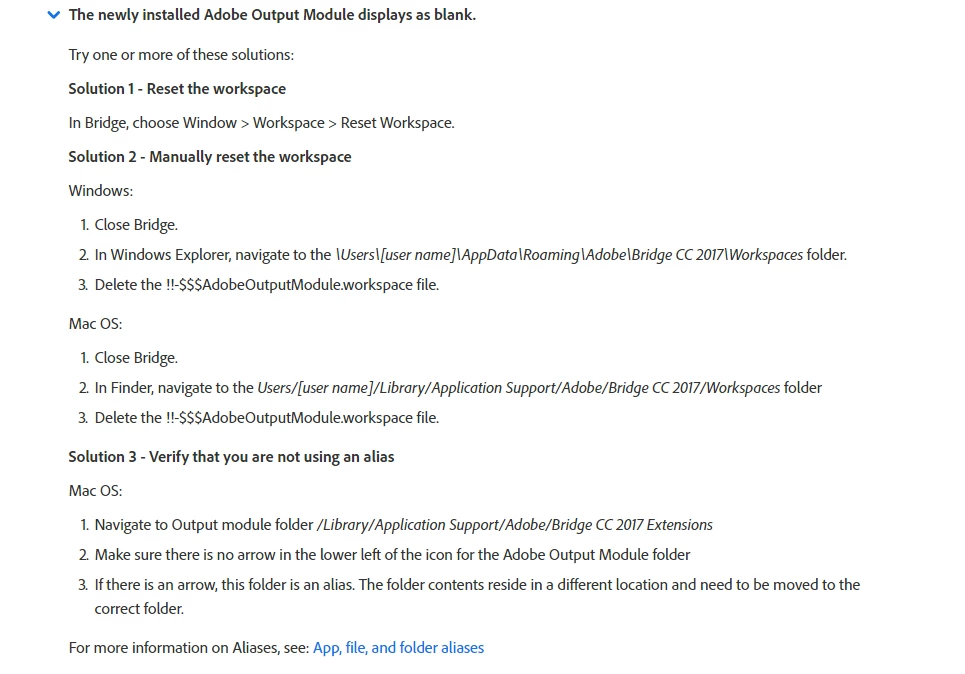 Output blank in Bridge 2017 cc