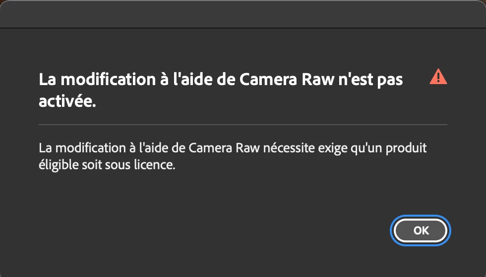 Il est impossible d'ouvrir une image dans CR depuis Bridge, il y a ce message qui s'ouvre :