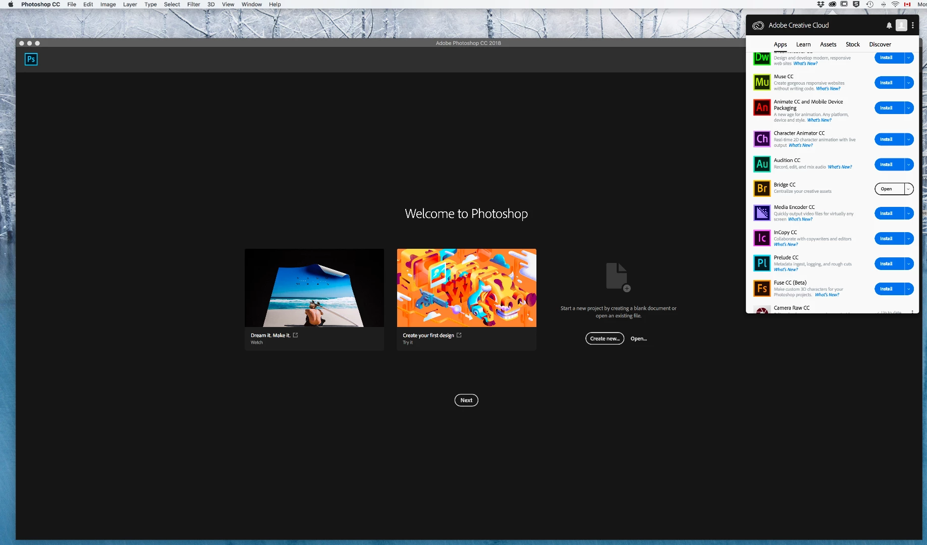When I am in Photoshop, Browse in Bridge automatically opens the Adobe CC desktop app and scrolls to Bridge for me to install it.
