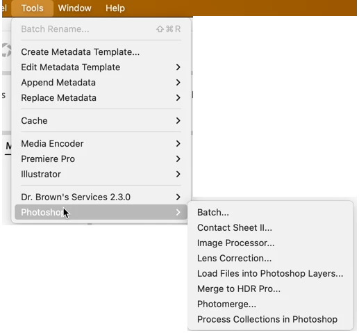 Where has Photoshop under the menu of Tools gone? I need to do some actions over several pictures.