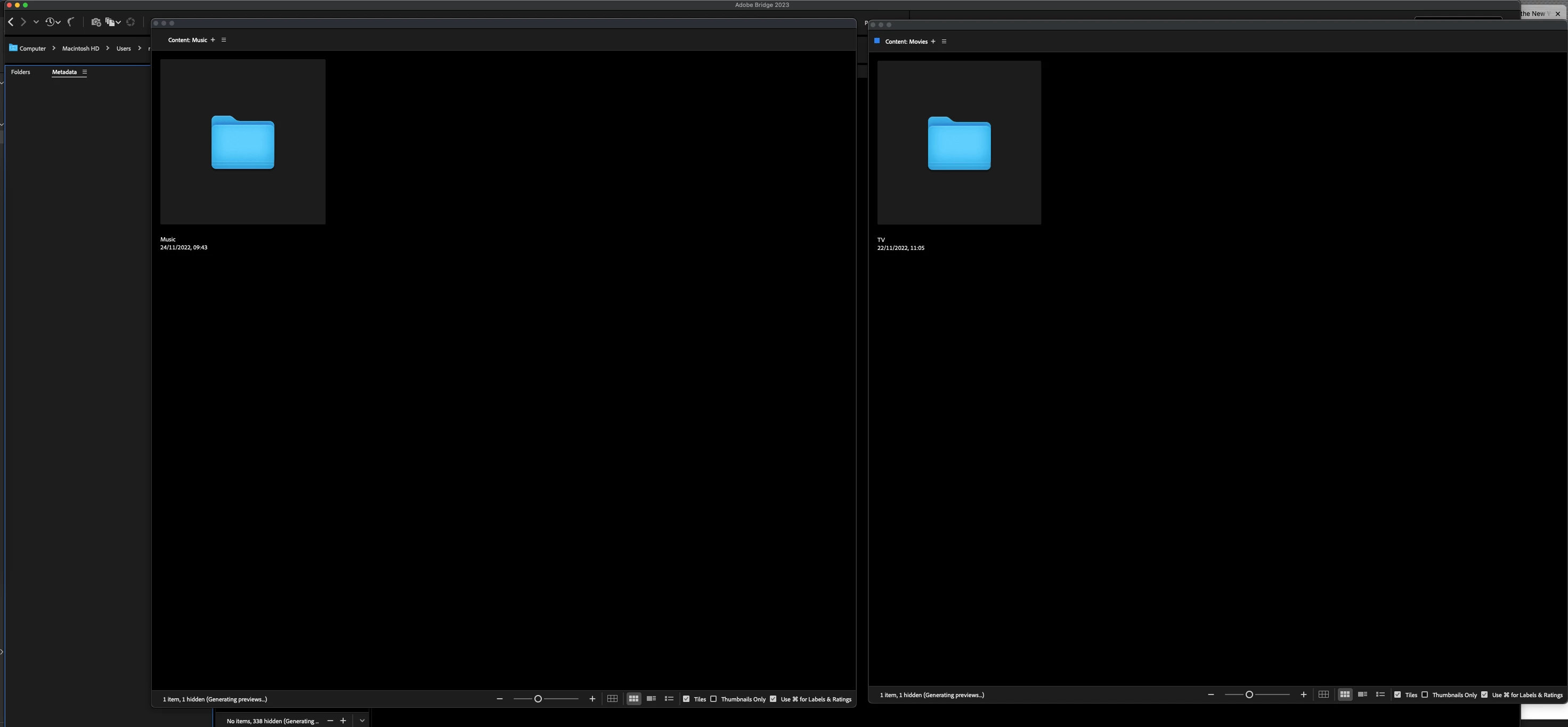 I understand that Adobe has added tabs to Bridge windows; which I'm sure is great for some people. But the tabs don't let you browse 2 folders side by side to visually compare them. So please keep the tabs, but also allow users to press Command N or to right click and ask for a folder to be opened in a new Bridge Window too.