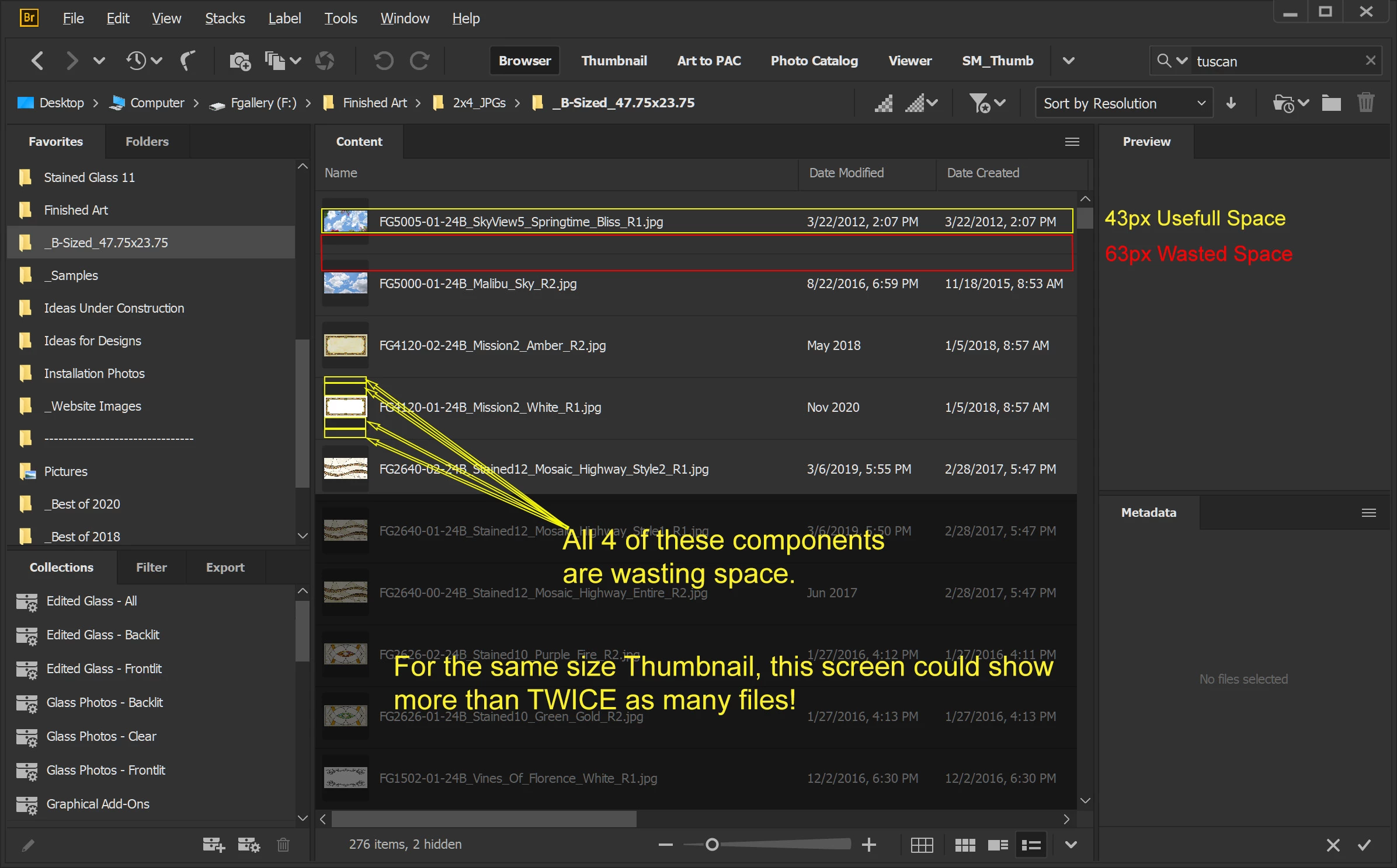 Image 1 - This illustrates that even with minimum thumbnails, there's plenty of wasted space AND the thumbnails are too small to be of any value.