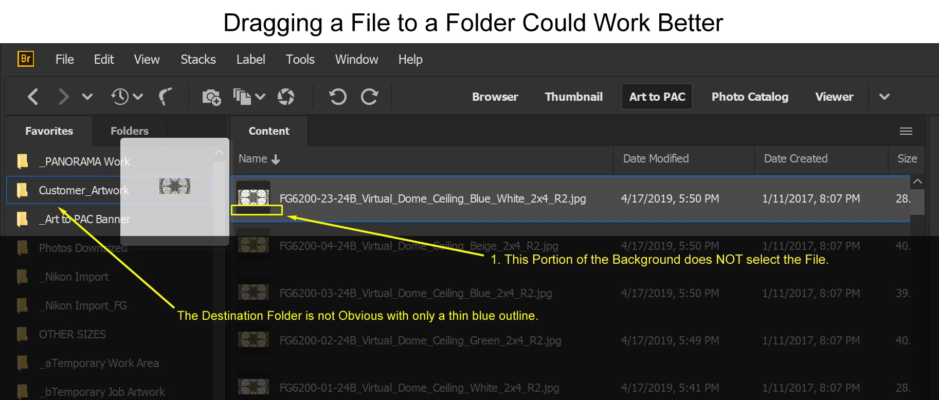 Image 3 - There is a slight bug in the 'dragging file' operation. The bottom of the black background is not active. You cannot grab the file at this location. You have to be at the thumbnail, or higher.