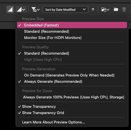 However, in Bridge 2023 and 2024, only the thumbnail size adheres to user-defined settings. When a RAW file is selected, the preview is automatically generated, regardless of the previously set preview size. This change, while potentially beneficial for some, may not suit everyone's workflow.