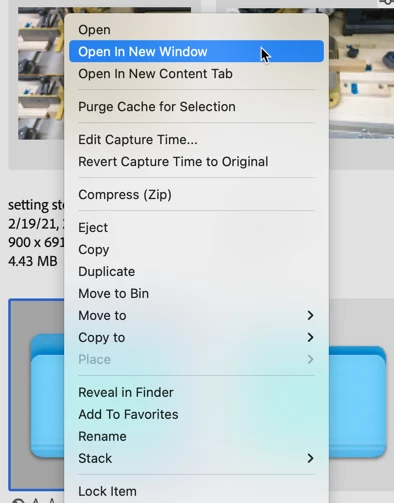 First, I'm sorry, I misread your original question. If you have a folder of images open, you cannot select one and open that in a separate window. What you see in the Contents Panel is the contents of a folder. If you want to see one image in a folder, just move that file into a separate folder, and you can open that in a Content Panel by right-clicking and selecting Open in a New Window or Open in a New Tab.