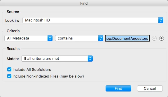 Has been a while since I have done this. Would like to search metadata of a collection of images for all images containing (or not containing) a set of one or more terms.