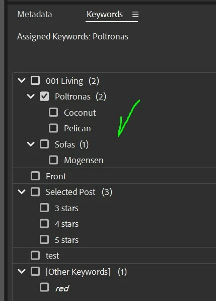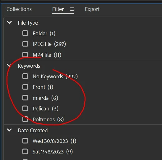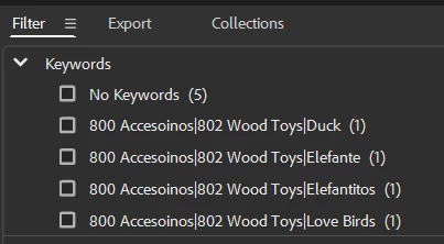 However, when later I try to select the images through keywords, It can´t be made through the same window menu.
