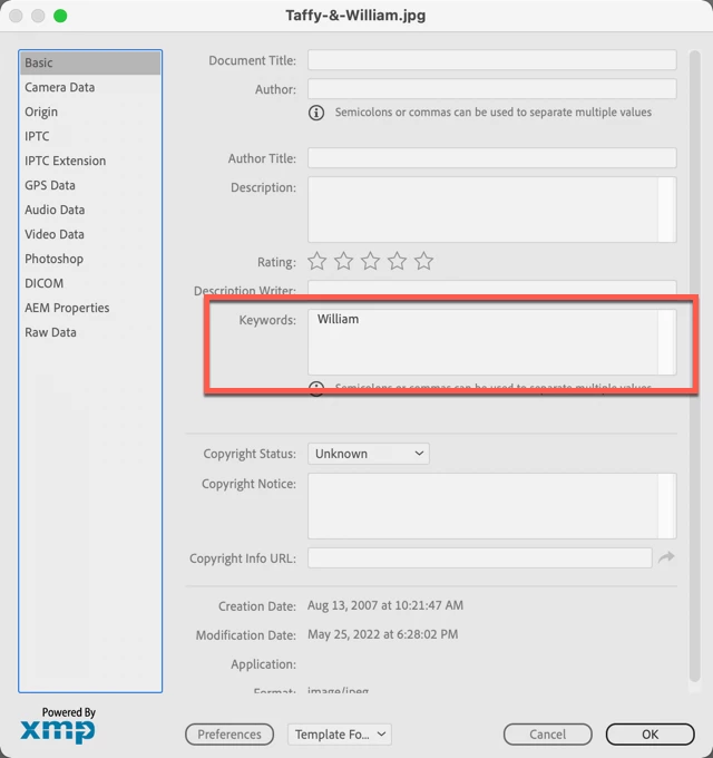 unable to save text in keyword in metadata panel of Bridge -- psd and psb files