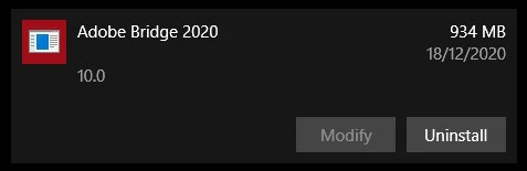 Unable to uninstall older version of Bridge (Bridge 2020 v10.0)