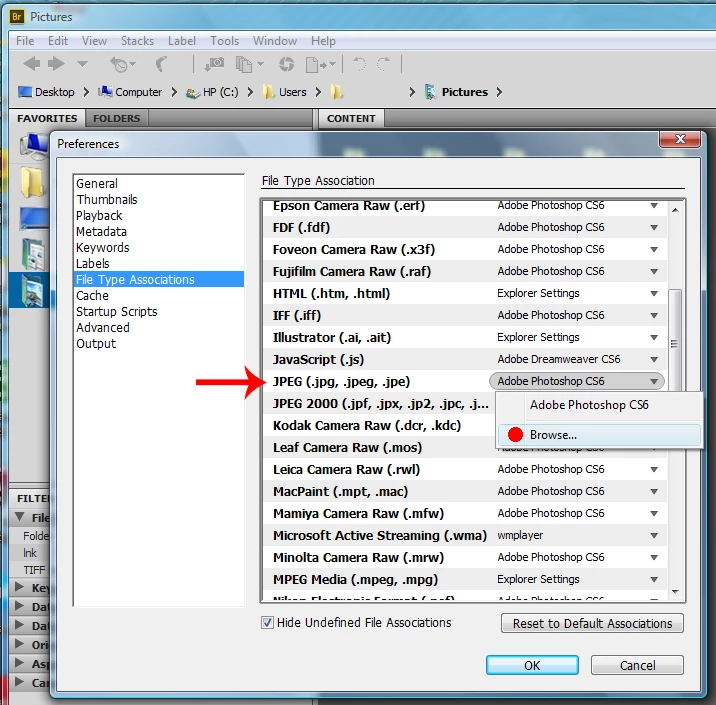 Using CS6, can't access Photoshop to look at JPEG images in Bridge