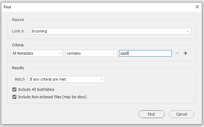 Using the letter "ß" in the keyword search