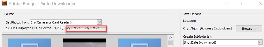 When using Bridge Photo Downloader folders are named in Arabic - how to reset?