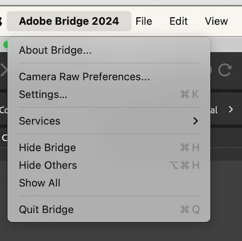 Where are Adobe Bridge Preferences in the 2024 version?
