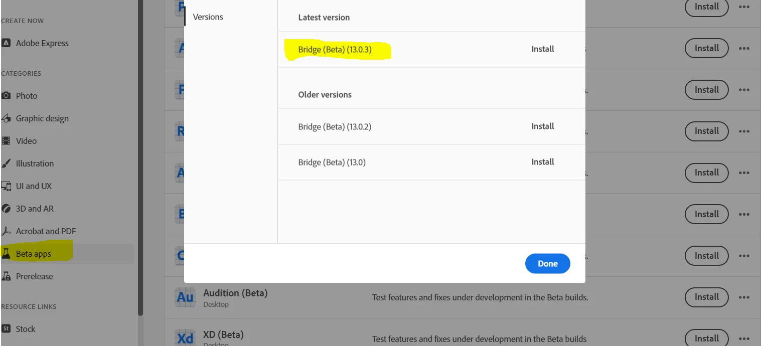 On 3/6/23 Mohit Goyal of Adobe posted that Bridge 13.0.3.686 is available, then locked the thread so no replies are allowed. My updated Creative Cloud says my version 13.0.2 is up to date and does not allow access to this new version. WTF?
