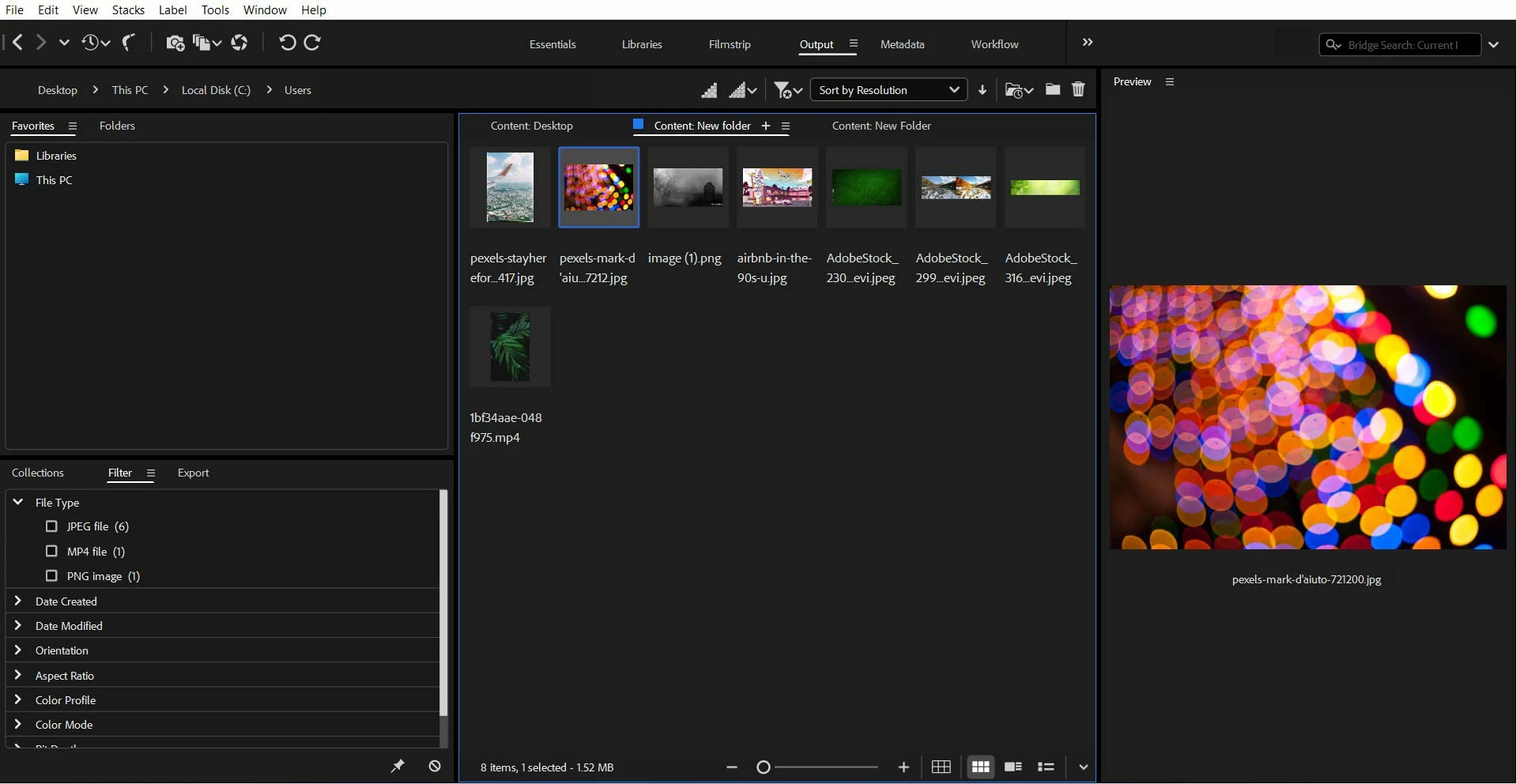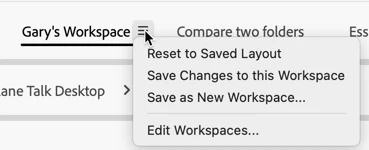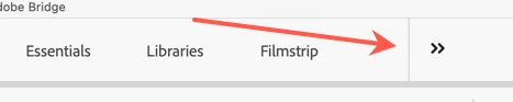 I'm starting to use Bridge 14.1.0.257, and when I look at the user guide, the workspace area at the top of the screen shows Essentials, Libraries, Filmstrip, Output, Metadata, and Workflow. I only see Essentials. I've attached screenshots of what I see in the user guide and what I see. I've edited workspaces to put Filmstrip and Output below the word "Bar", and Bridge will only display Essentials. I can access Libraries, Filmstrip, Output, etc if I click on the double arrow to the right of Essentials. I've uninstalled Bridge and deleted Preferences and reinstalled and have the same results. Has there been a change to Bridge where I should only use the double arrows or is there something I have to do that I missed?