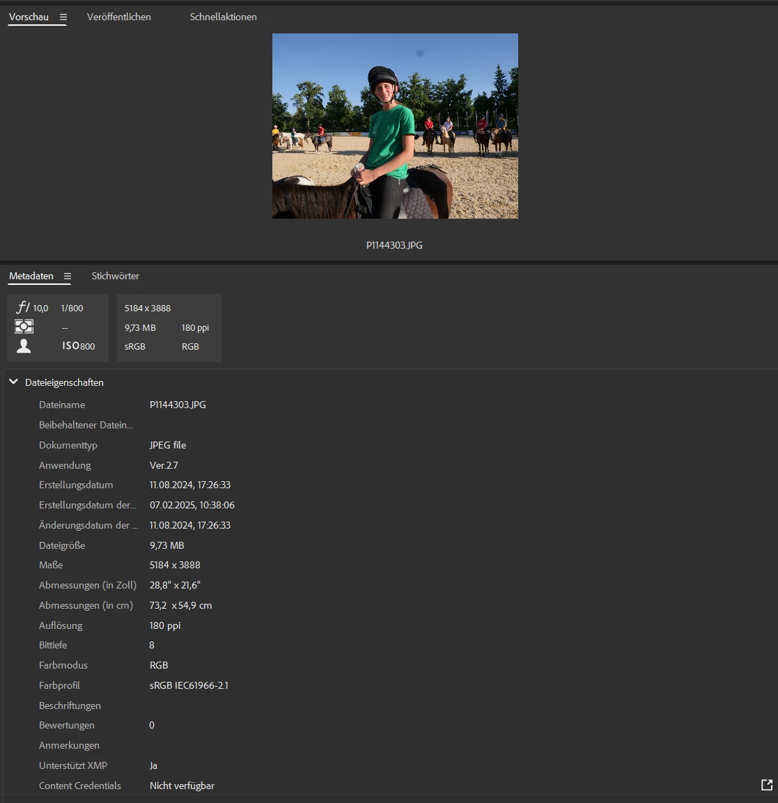 When selecting a Photo (JPG), the Metadata is shown: