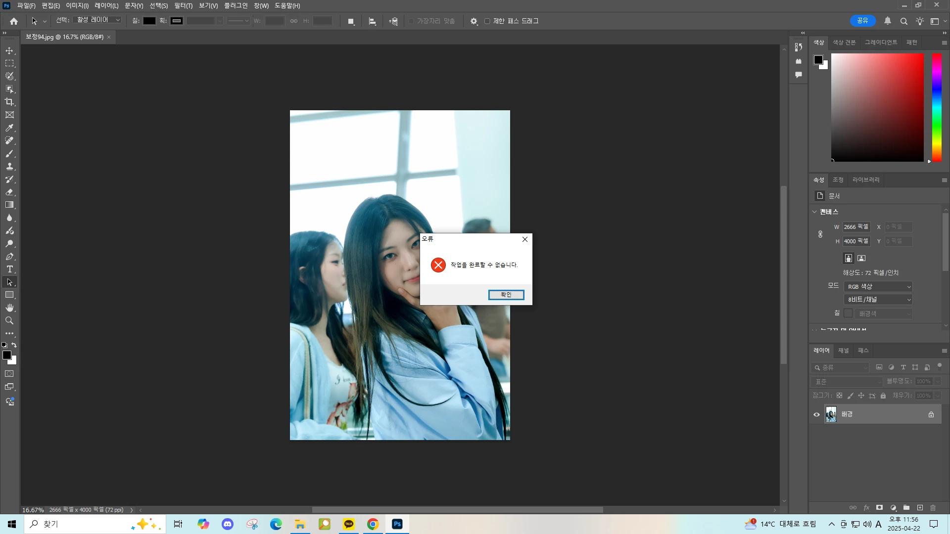 사진을 보정하는데 카메라 로우 필터를 하려고 하면 오류 창이 뜹니다.