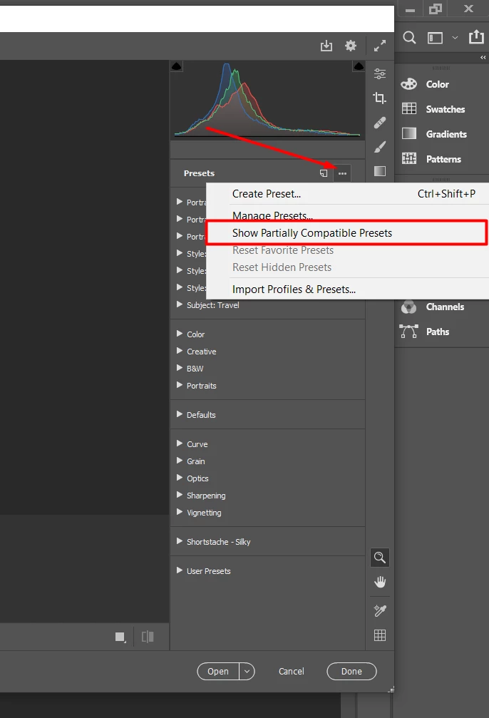 I have tried importing presets that I purchased. The instructions seemed simple enough: choose "Import profiles and presets" from the profile menu. Select the Zip file (The unzipped folder isn't an option). Import completed, return to the profile menu, all that appears is the default options. If I try to reimport the presets, I'm told "Already imported."