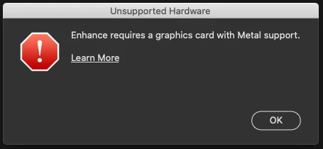 When I check the graphics card it says it supports metal and is 64gb quad core (2015 MacBook Pro i7 running Catalina 10.15.7)