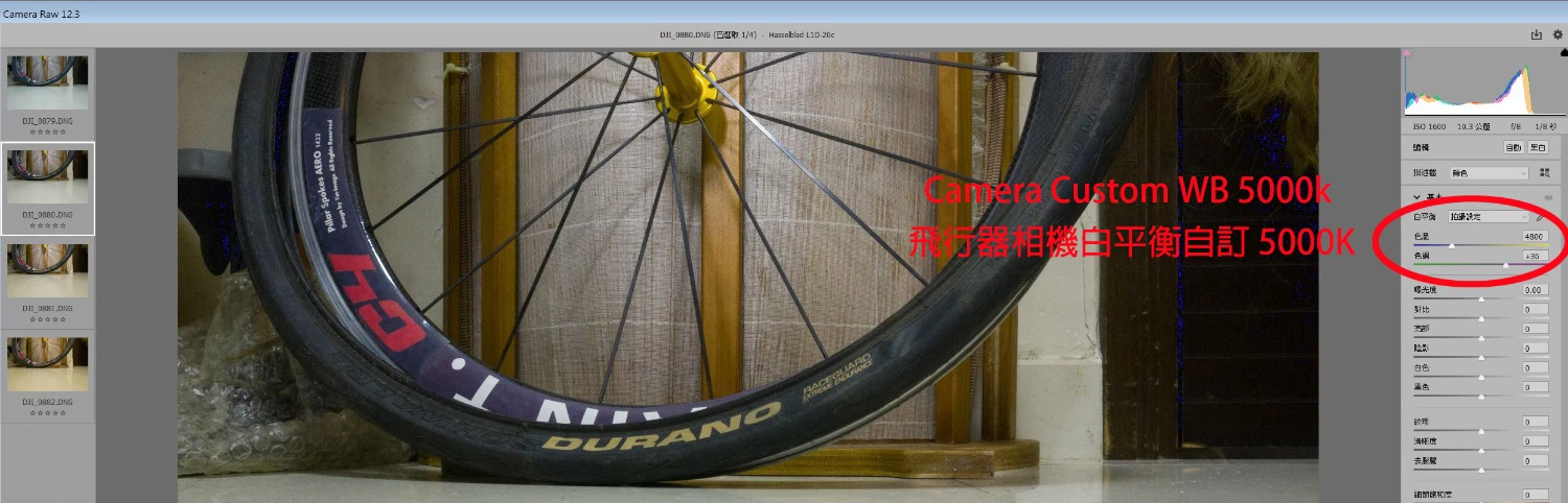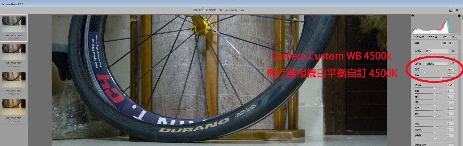 these 4 photos from DJI Mavic, A mode, custom WB 4500k, 5000k, 5500k, 6000k and open with ACR