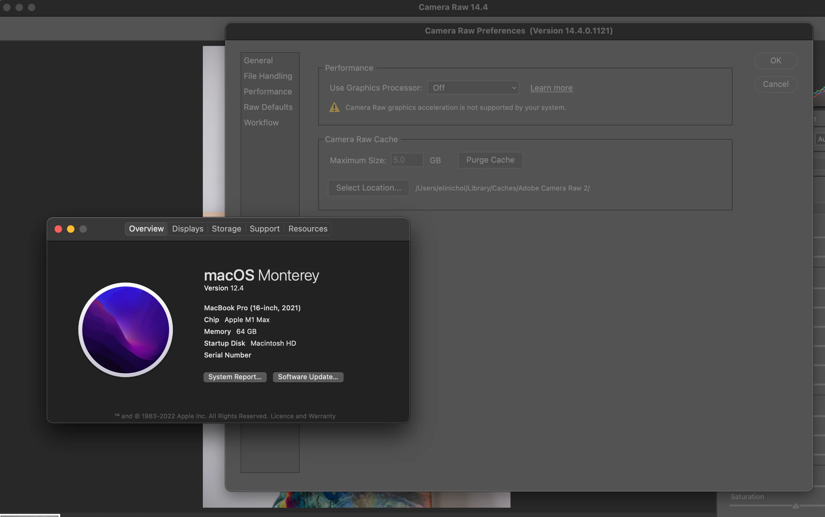 Adobe camera raw 14.4 not showing graphics processor for M1 Max 16 inch