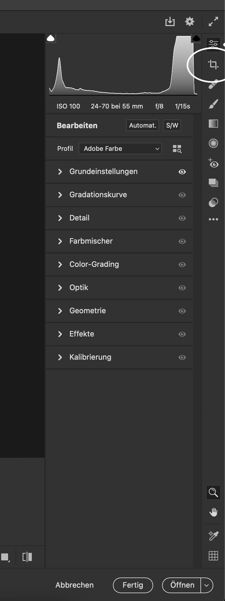 hello, the cropping tool has disappeared in camera raw filter, when the file is opened it is still there when I later want to crop the image in a picture what was simply done via camera filter is the button gone since the update?