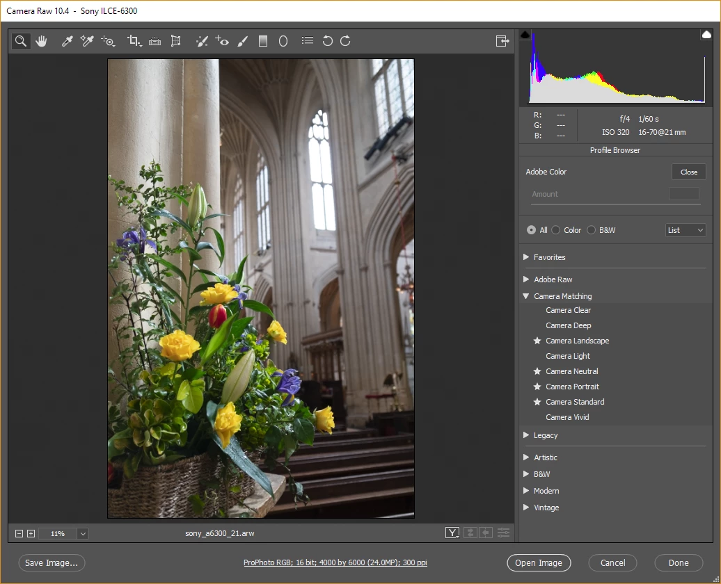 camera matching profiles missing in Adobe Raw