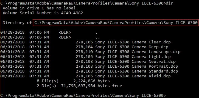 Since the update to Bridge 8.0.1.282 and Camera Raw 10.3.0.933 I miss the camera matching profiles in Camera Raw from my Sony A6300.