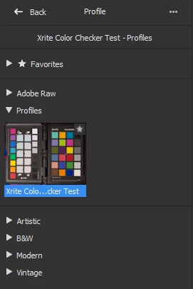 Inside Camera Raw, I see the Adobe original Profiles, but I don't see any Custom Profile.