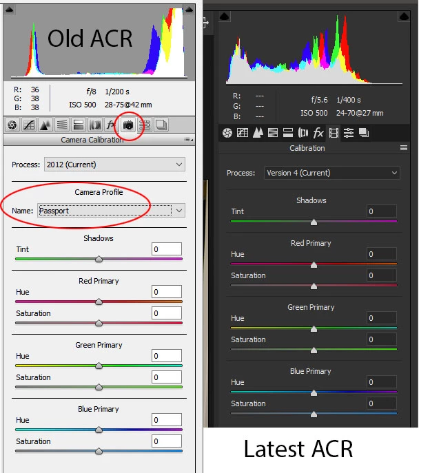 I had some colorchecker passport for camera dcp profiles which were originally under the Calibration menu/ Camera Profile drop down tab, which is now missing in the new update for ACR.