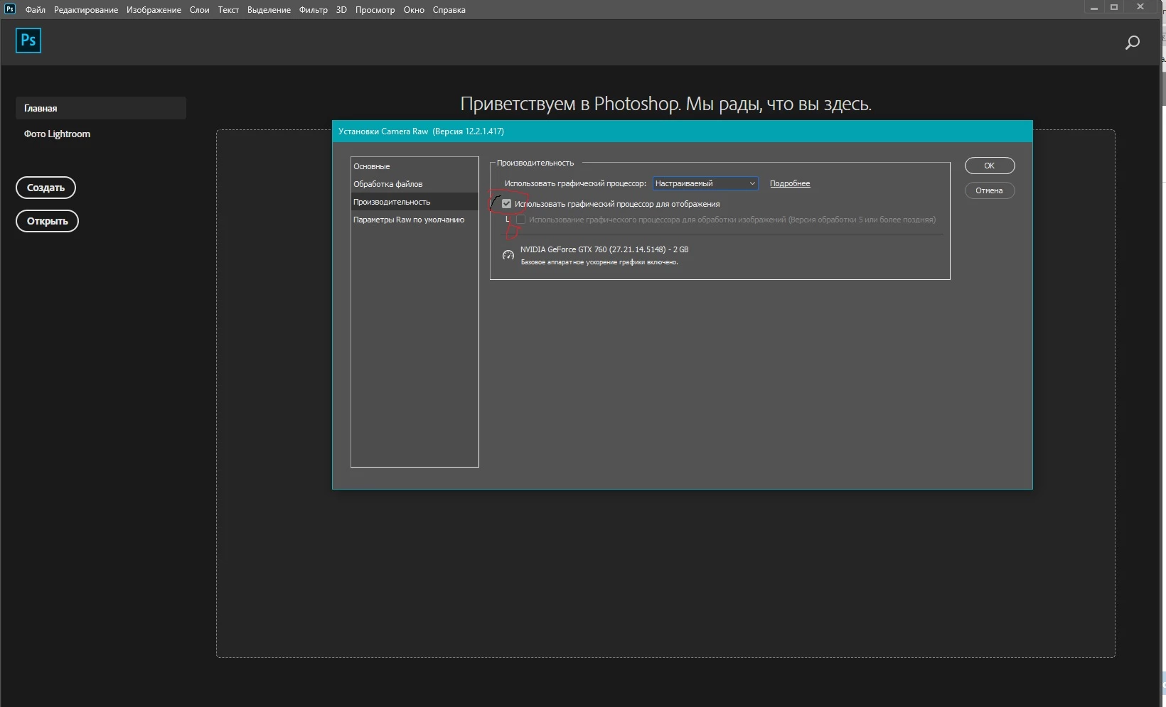 Hey. Please tell me why the camera raw 12, it is not possible to check the Use graphic proce.