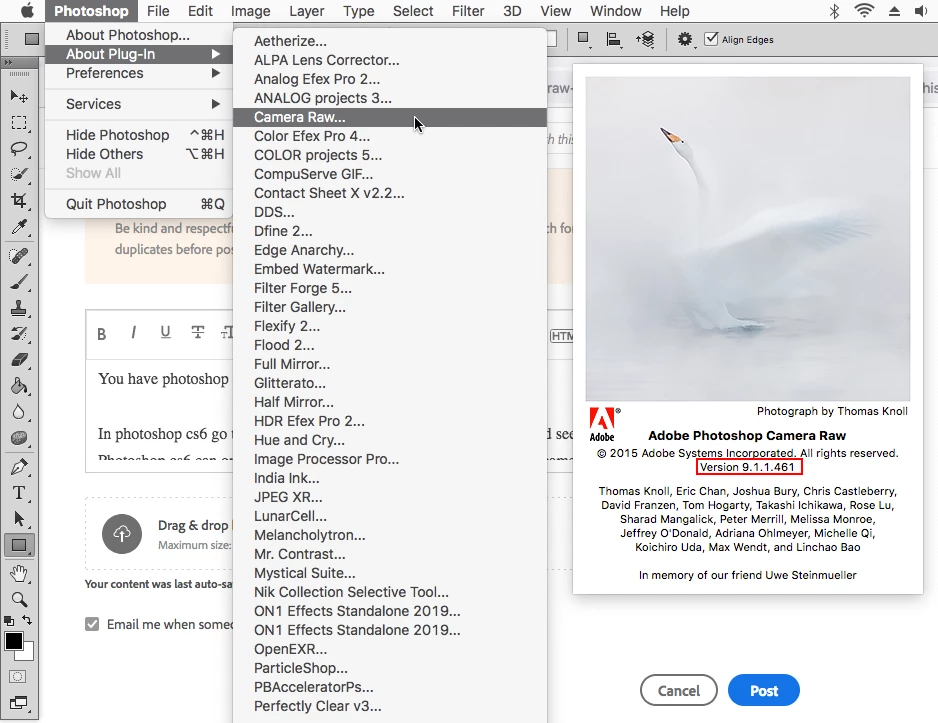 As for finding what version of camera raw I have installed presently, I went to library/adobe support, where Camera Raw shows Camera Profiles, but I can't find my version. I am starting to worry, thanks
