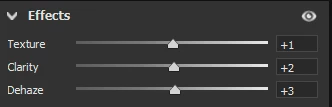 Step 1 - Set texture, clarity and dehaze to distinct values (let's say 1, 2, 3)