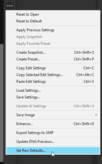 Before clicking the eye icon we need to create and set a Raw default profile.