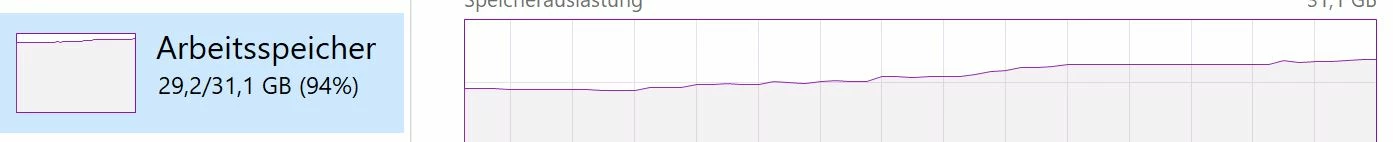 Then, with the next picture I use the mentioned AI tools, and CR is creating a DNG-file as a copy of the original RAW file (I think this is normal procedure). From this point, RAM usage is going up to nearly max. usage, see the screenshot. And now, CR is very slow, which might be based on the fact that there is not much available RAM anymore.