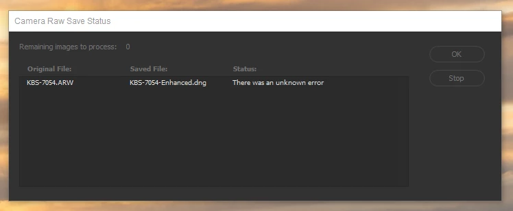 Took a Sony A7RIII file into Camera Raw to test the enhanced feature. When I hit the Enhanced process button a few seconds later an |Error message come up. So I chose another file and tried to Enhance it in Camera Raw. Now I get a new message.