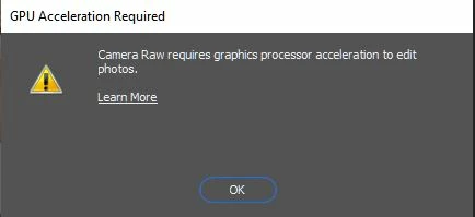 I am facing problem with Camera RAW in photoshop whenever I start camera raw I got attached error message. I tried to rename GPU folder and also tried to disable Graphics option in preferences but still get gets error whenever I start Camera RAW.