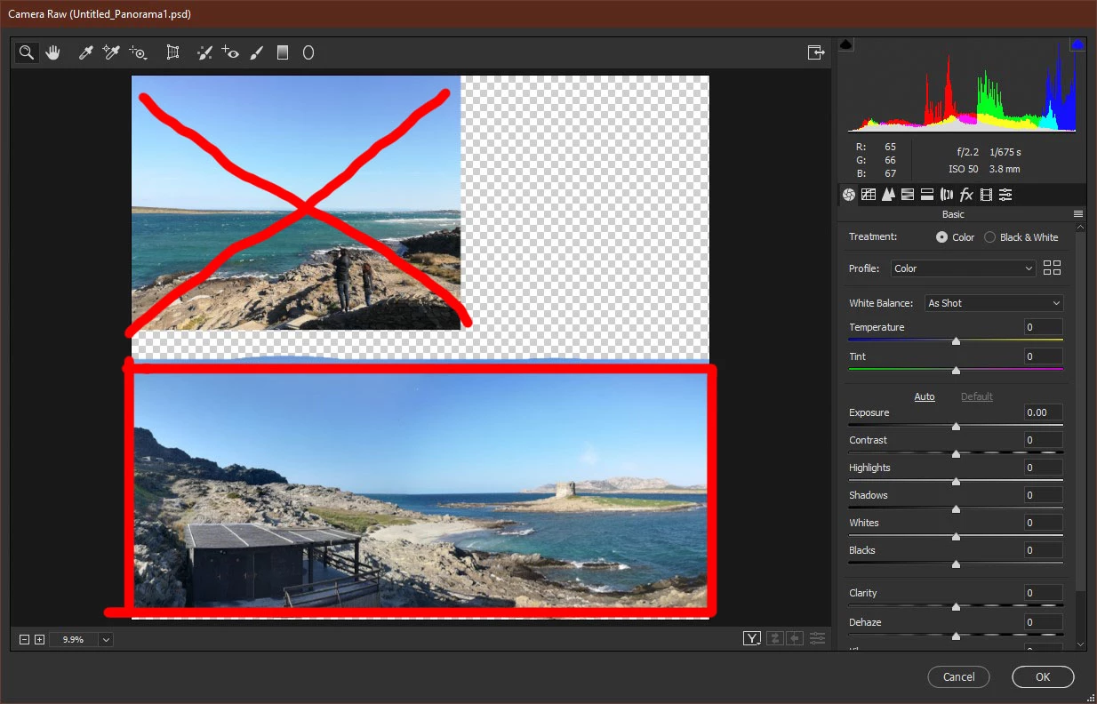 Camera raw for a panorama picture