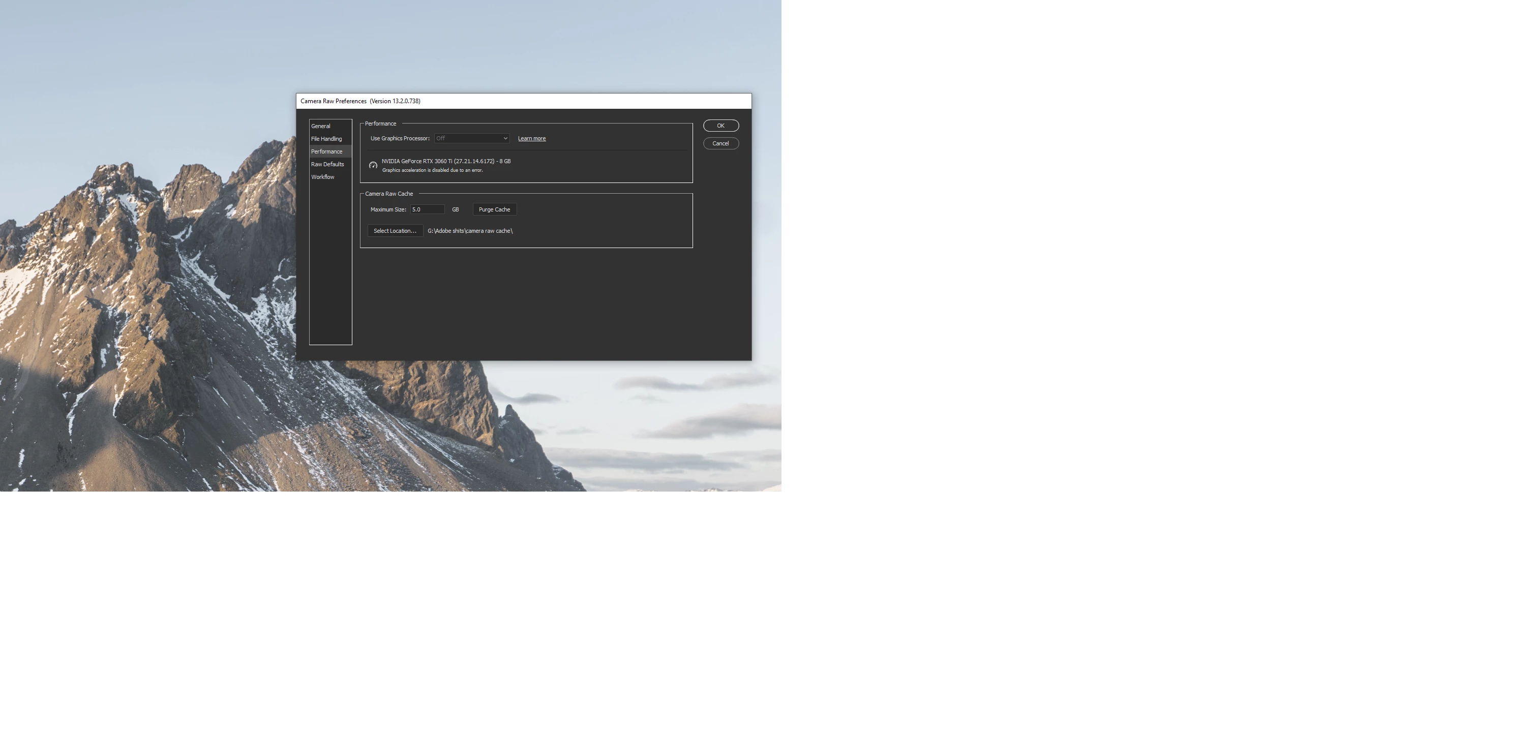 I have the latest camera raw 13.2 update and I can't get it to use my gpu. I have the latest Nvidia drivers and Windows is up to date. My pc specs are AMD Ryzen 5600x and Nvidia RTX 3060Ti. The strange thing is it worked once but has yet to work again it just says (graphics acceleration is disabled due to an error).
