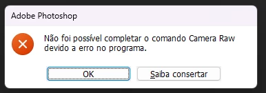 SSilvani_Duarte Silva8228ParticipantForum|Forum|1 year agoSeptember 28, 2024QuestionCamera Raw não abreForum|Forum|1 year agoSeptember 28, 20241 reply322 viewsQuando vou abrir o camera raw, ele informa: Não foi possível completar o comando Camera Raw devido a erro no programa. Ele está atualizado junto com Photoshop V 25.12Windows